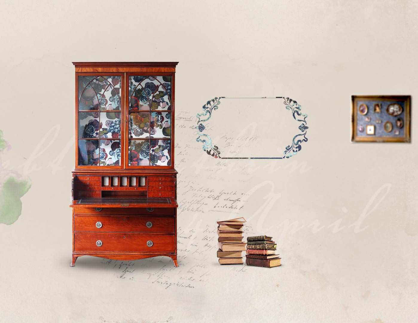 Das ist ein Schranksekretär. Tom, der Restaurateur sagt, Regency, so um 1810. Und wir sollen ihn bloß nicht verkaufen. Es sei eine selten schöne Einzelanfertigung, England. Er tritt noch einen Schritt zurück und meint, man würde an der Art der Ornamente sehen, dass er aus England stammt. Von jemandem genauso gewünscht und gebaut. Wir stellen uns also vor, wie Mrs. Bancroft vor über 200 Jahren ihren eigenhändig gezeichneten Sekretär endlich geliefert bekam, an seinem schon seit Wochen geplanten Platz im kleinen Salon aufstellen ließ und gleich daraufhin ihren Kindern strenger Miene verbot, auch nur in die Nähe dieses Schrankes zu kommen, geschweige denn, irgendwelche Türen zu öffnen oder Schubladen aufzuziehen. So ging man damals in entsprechenden Kreisen grundsätzlich mit solchen Möbeln um. Mit Kindern auch. Vielleicht aber hatte Mrs. Bancroft auch noch ihre ganz eigenen Gründe, niemanden in diesen Schubladen stöbern zu lassen. Wir glauben, das hatte sie sogar ganz bestimmt. Nicht, dass man Mrs. Bancroft einen ausschweifenden Lebenswandel vorhalten konnte. Das nicht. Aber man sprach von zwei Romanzen, die sie ganz sicher, vielleicht, gut möglich, nie und nimmer, eventuell und todsicher gehabt haben könnte. So sicher war man sich nicht. Und genau deshalb wären wir uns wiederum sicher, ein Blick in diesen Schranksekretär wäre aufschlussreich gewesen. Denn wenn!, dann hätte sie irgendeine Form der Erinnerung dort aufbewahrt. Natürlich nicht – zackbumm – ganz oben in der ersten Schublade. Aber nein. Was man wie ein kleines Geheimnis, wie eine kleine Träumerei und Erinnerung im Herzen trägt, das bekommt auch einen ebenso besonderen Platz. Da geht es jeder Frau wie Mrs. Bancroft. Und zwar im Mai 1810 genauso wie heute auch.
