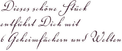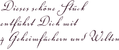 Das war dann bestimmt auch der Grund, warum man sie, nachdem die beiden Mädchen zu Bett gebracht worden waren, oft im kleinen Salon am Schranksekretär Licht machen sah. Die Ausrede für ihren Mann, der sie dann öfter fragte, was sie denn da mache, erschien glaubhaft. Sie führe Haushaltsbuch. Es seien schließlich unruhige Zeiten. Ach, hätten wir Mrs. Bancroft doch nur früher kennengelernt. Sie hätte bestimmt noch mehr versonnene Stunden an ihrem Sekretär verbracht, ihren Kindern noch strenger den Zugang verboten und ihren Mann noch dreister belogen. Aber ihre kleinen Geheimnisse wären noch schöner aufgehoben gewesen. In kleinen, von uns gestalteten Welten und neu eingebauten Geheimfächern, versteckt überall im Schrank. Der Brief, der Spekulationen um ihre Romanzen neues Feuer geben würde, vielleicht hier. Das Taschentuch mit den Initialen, das aus Spekulationen endgültig Tatsachen machen würde, vielleicht dort. Und der Ring, der dem sowieso schon angeschlagenen Herz von Mr. Bancroft nicht zuträglich wäre, hätte auch noch einen Platz gefunden. Schließlich hätte er keinesfalls die zauberhafte echte Silberkugel finden dürfen, in der er sich hätte verstecken lassen. Nun gut. Zu spät für Emily Bancroft. Dafür kannst Du nun dieses schöne Stück in Deinen kleinen Salon stellen und seine Geheimnisse mit Deinen teilen. Denn entgegen den Empfehlungen des Restaurateurs werden wir uns doch von ihm trennen. Ein bisschen schweren Herzens. Ein bisschen leichten Herzens. Denn Schönes muss doch in die Welt.