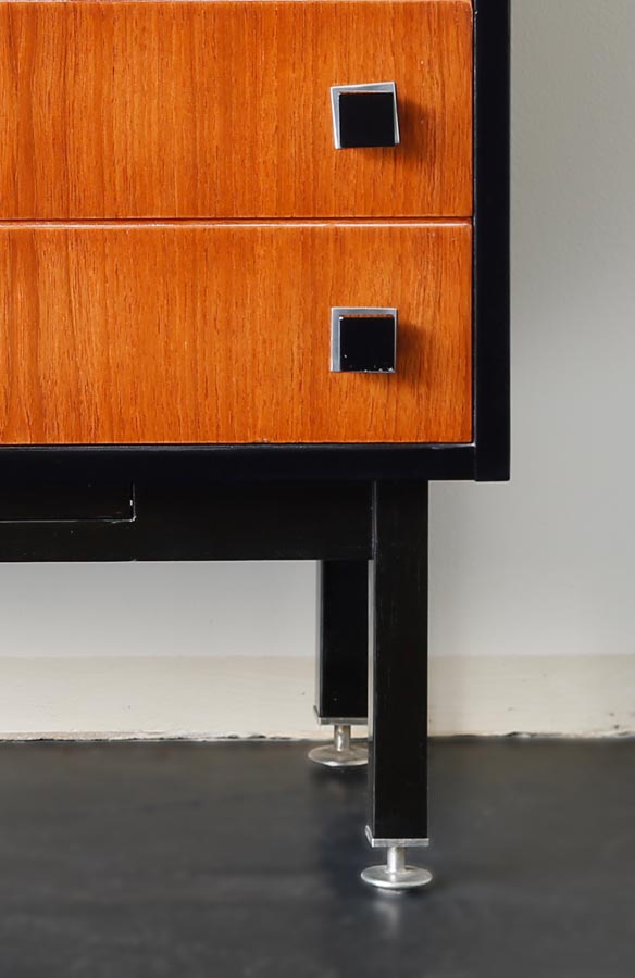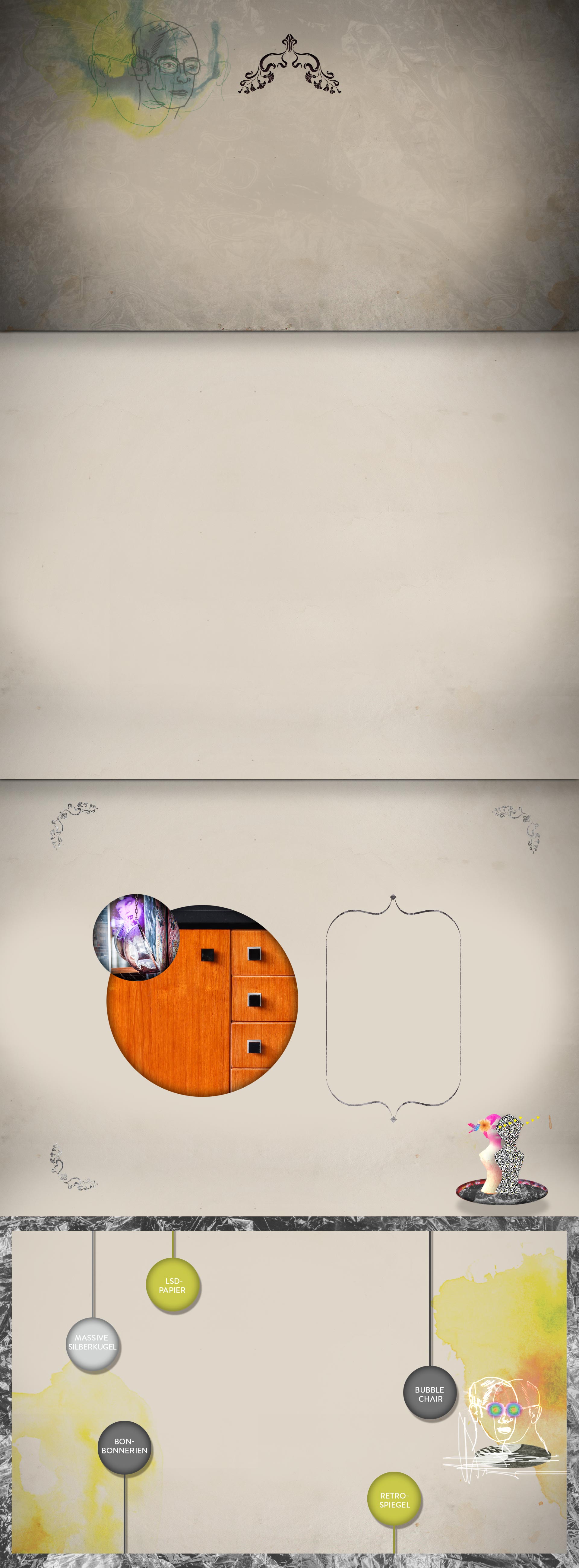 Und da begann der neuentdeckte Stoff auch schon eifrig mit Hoffmanns Rezeptoren und Synapsen zu spielen. Anfangs berichtet er von Angstgefühl, Lähmungserscheinungen und Sehstörungen. Später von bedrohlicher Verwandlung und Verzerrung seiner Umgebung. Das Ende seines kleinen Fahrradtrips beschreibt er allerdings so: „Jetzt begann ich allmählich das unerhörte Farben- und Formenspiel zu genießen, das hinter meinen geschlossenen Augen andauerte.“ Und vielleicht hätte er genau das lieber für sich behalten sollen. Denn das hat natürlich die ganzen Hippies so was von neugierig gemacht, dass LSD aus unzähligen hübschen kleinen Kommunen mit ebenso hübschen kleinen Kommoden wie dieser hier nicht mehr wegzudenken war. Und seien wir mal ehrlich. Wir sollten auch mal ein bisschen dankbar dafür sein. Denn so schöne Werke wie „Herr Rossi sucht das Glück“ oder „Lolek und Bolek“ und vielleicht sogar „Biene Maja“ wären doch sonst gar nicht entstanden. Allerdings kann man auch nur durch Einnahme von 2 Oreo-Keksen auf die Idee kommen, Fächer von Möbeln mit original LSD-Plotterpapier zu tapezieren, Geheimfächer und eine Silberkugel in einem versteckten Schacht einzubauen und sich aus New York die Miniatur eines echten Bubble Chairs zu besorgen und aufzuhängen. Also so war das bei uns. Wirklich. Und wenn Du nach dem Kauf dieser Kommode behauptest, die Kommode hätte Dir da etwas ganz Anderes erzählt, dann behaupten wir eben, Du hättest die ganze Schublade mit dem LSD-Papier ausgeschleckt, nachdem Albert Hoffmann Dir das gute Stück mühevoll mit dem Fahrrad geliefert hat.