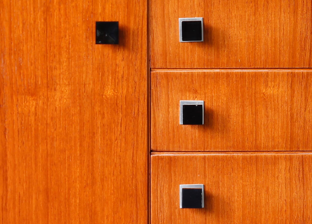 Draper mit seinen Frauengeschichten. Bukowski mit seinen Frauengeschichten. Liebe, Ehre, Gefühle, Glück. Die ganz großen Themen. Immer dreifingerbreit Whiskey dazwischen. Ja, und, was kam raus? Nichts. Außer diese beiden nachdenkenswerten Zitate, die der Barmann aufschrieb. Und natürlich dieses Barschränkchen, das an dieses Treffen erinnern möchte. Schließlich kommt es aus derselben Zeit. Und verkörpert neben dem Platz für einige Gläser und Lieblingsdrinks auch dieselbe Lust auf Geschichten, die man sich mit einem guten Glas in der Hand eben so erzählt. Einige Anregungen haben wir natürlich auch in Geheimfächern versteckt. Falls Dich das allerdings an Charles & Don erinnert, war es definitiv ein Glas zu viel.